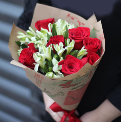 Букет "Красные розы и альстромерия" | Доставка цветов в Баня-Луке